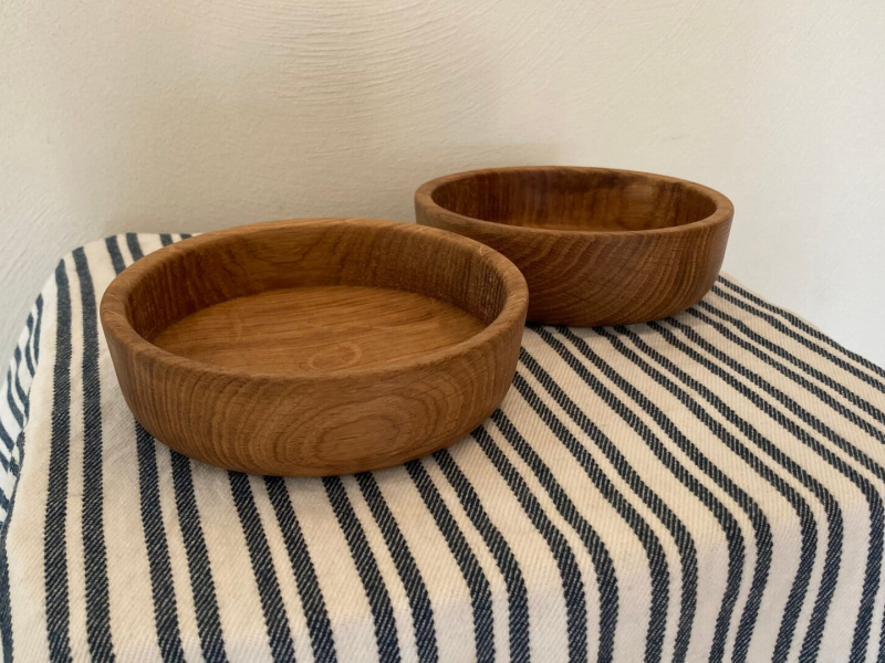 Set eikenhouten schaaltjes 12,5 cm
